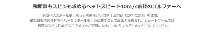 HONMAのボール史上もっとも軟らかいコア「ULTRA SOFT CORE」を採用。