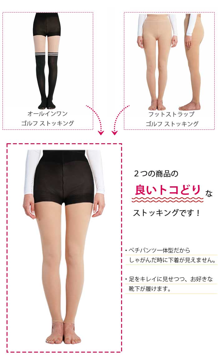 【カラースキン】フットストラップ ゴルフ ストッキング ぺチパンツ 一体型 ゴルフウェア トレンカ FOOT STRAP STOCKING 女性用