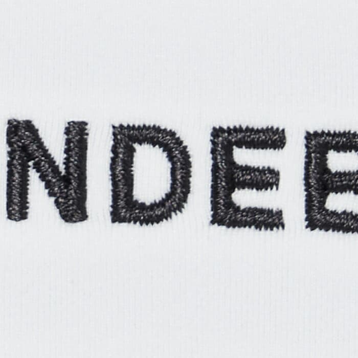 裾と袖口にはブランドロゴ入りのエラスティックテープが施され、フィット感とデザイン性を高めています。