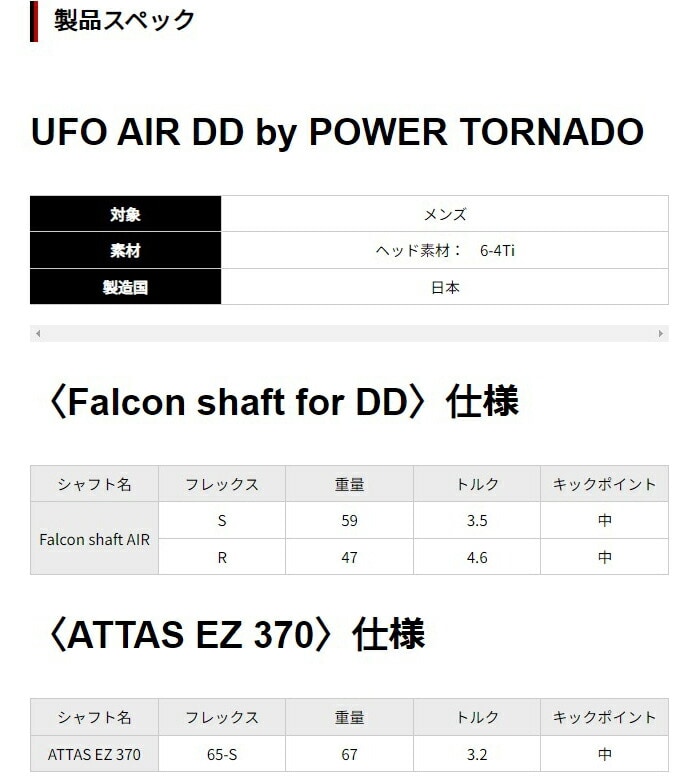 キャスコ UFO AIR DD by POWER TORNADOドライバー Falcon shaft AIR カーボンシャフト 2024年モデル Kasco エアー パワートルネード 日本製