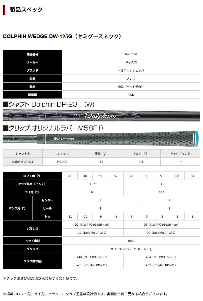 キャスコ ドルフィン ウェッジ DW-125G Dolphin DP-231 カーボンシャフト装着 2025年モデル