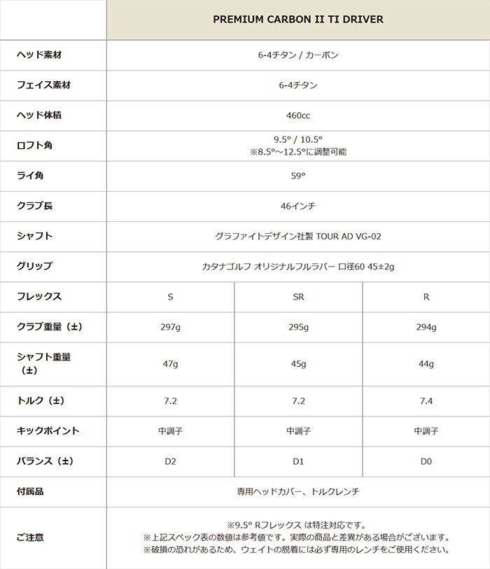 カタナ ボルティオ ニンジャ プレミアムカーボン2 Ti ドライバー TOUR AD VG-02シャフト