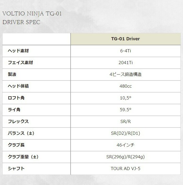 【高反発モデル】カタナ ボルティオ ニンジャ TG-01 ドライバー TOUR AD VJ-5シャフト