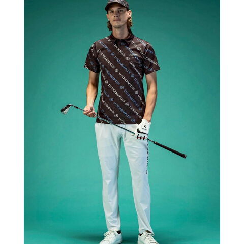リュクスエイケイエムプラス ゴルフ 半袖 ポロシャツ 総柄ロゴ メンズ LAH-24004 トップス ゴルフウェア 2024年春夏モデル LUXEAKMPLUS 春夏ウェア