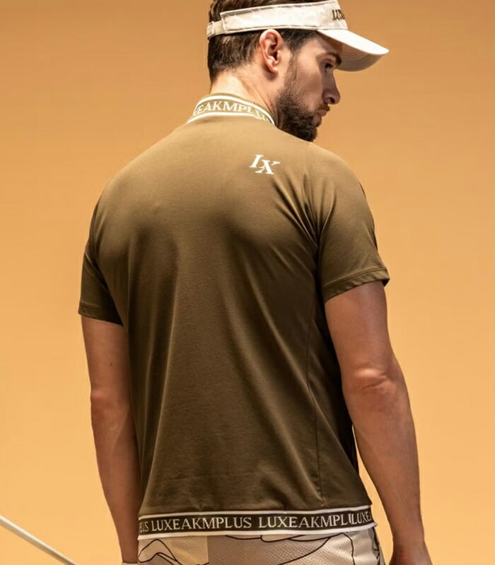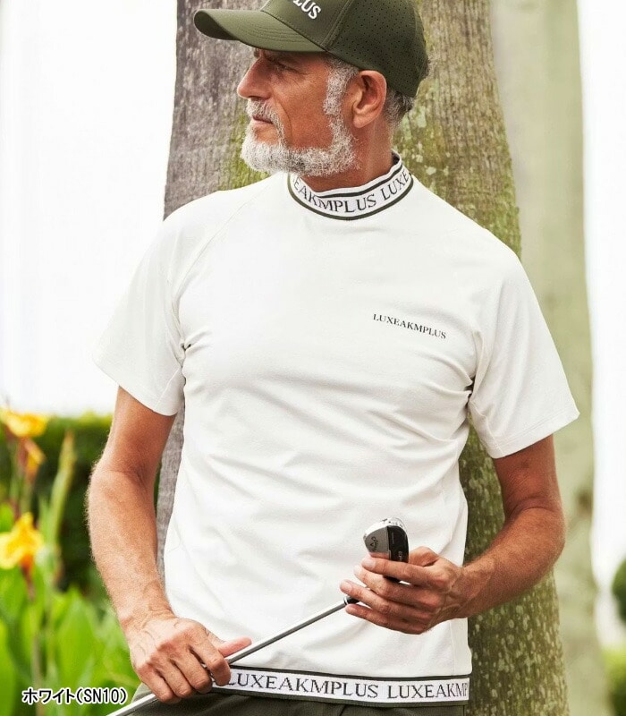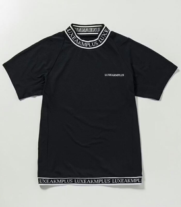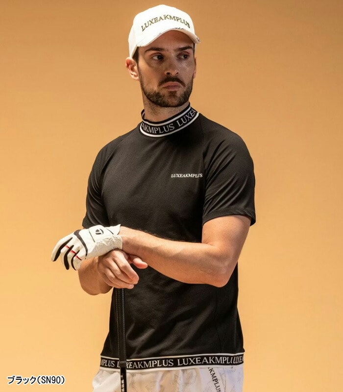リュクスエイケイエムプラス 半袖 モックネックシャツ Tシャツ ゴルフ カラーロゴ メンズ LAT-25003 LAT25003 2025年春夏モデル LUXEAKMPLUS 春夏ウェア 吸湿 UV
