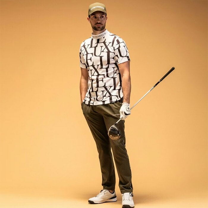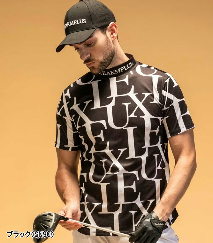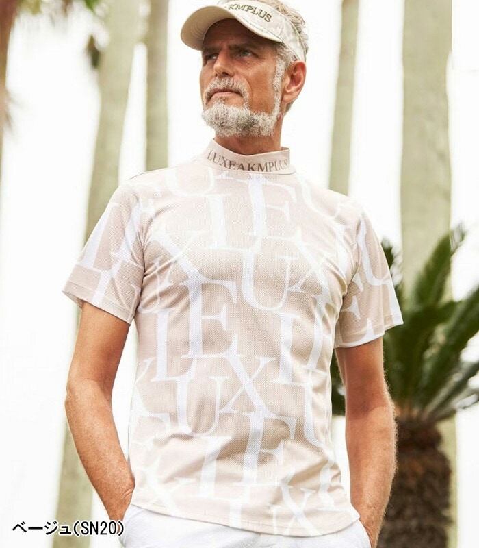 リュクスエイケイエムプラス 半袖 モックネックシャツ Tシャツ 総柄 メンズ LAT-25004 LAT25004 2025年春夏モデル LUXEAKMPLUS 春夏ウェア 吸水速乾