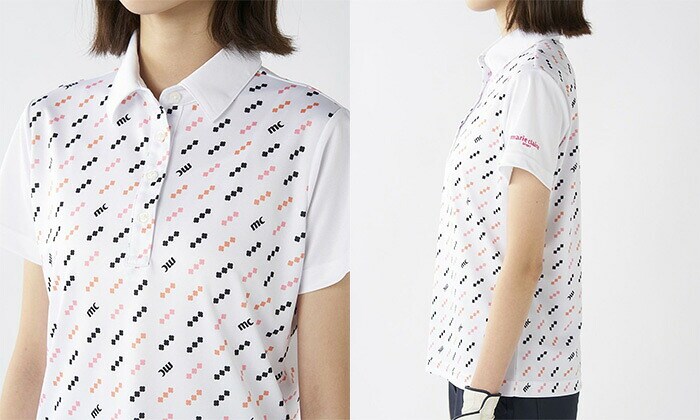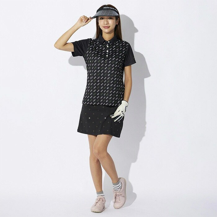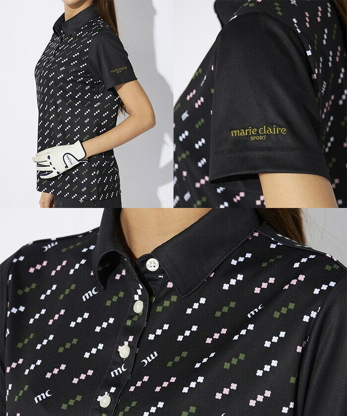 【レディース】マリ・クレール 半袖 ポロシャツ 715-654 カラフルロゴパターン 吸汗速乾 UVカット 接触冷感 遮熱 ゴルフウェア 女性用 2025年春夏モデル marie claire