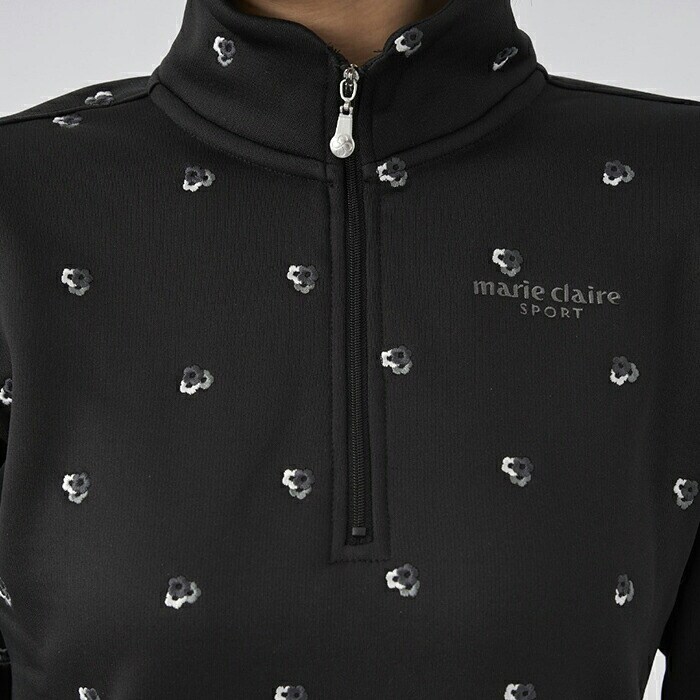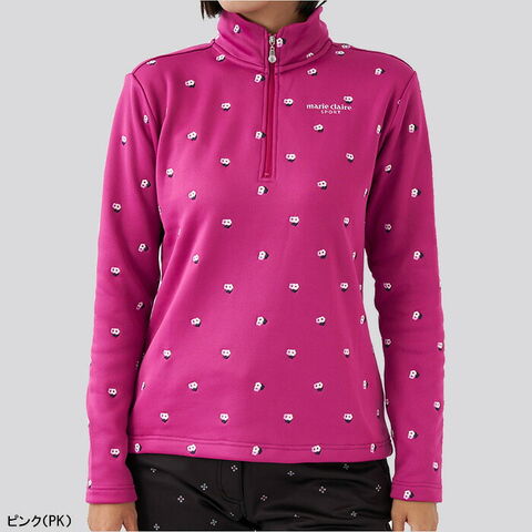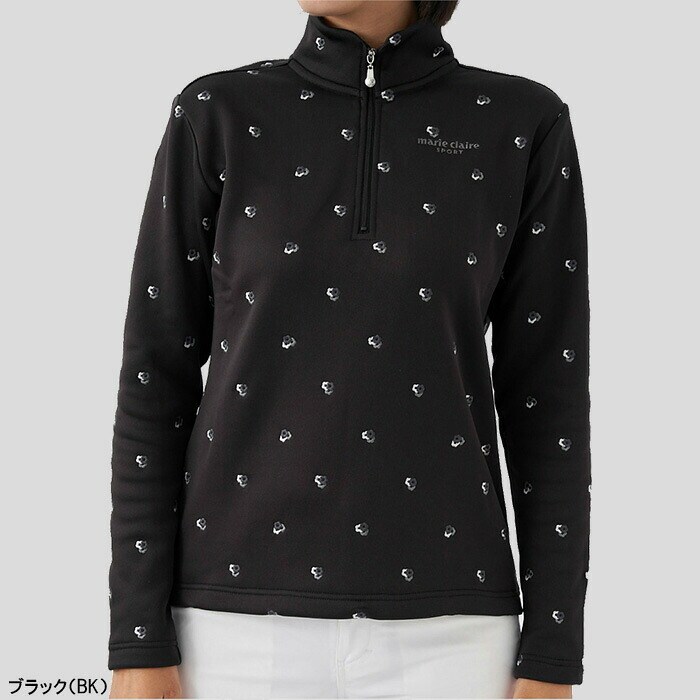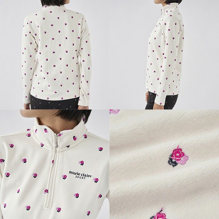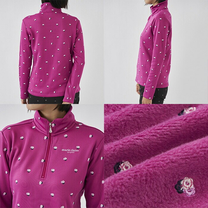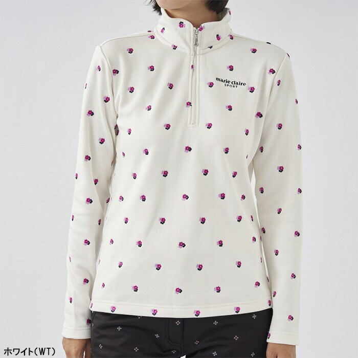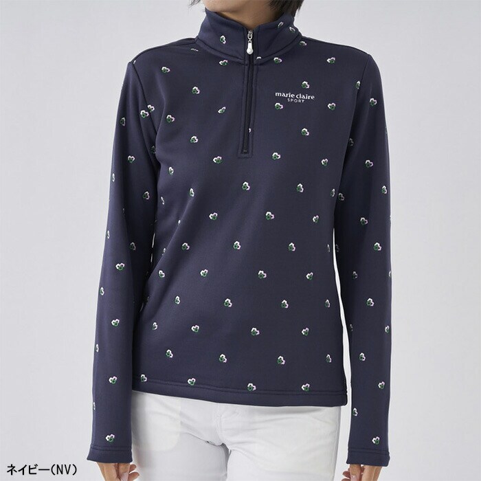 【レディース】マリ・クレール 長袖 ハーフジップ ハイネックシャツ 小花柄 裏シャギー 733-502 ゴルフウェア 2023年秋冬モデル marie claire マリクレール 秋冬ウェア 女性用