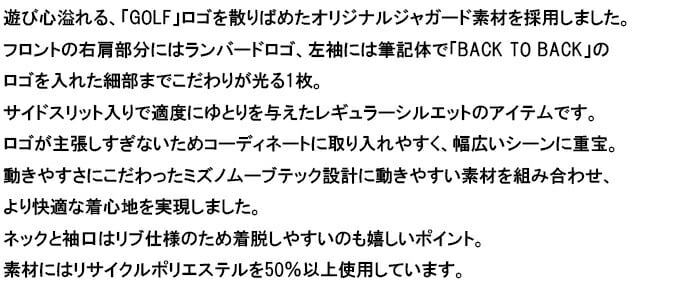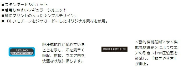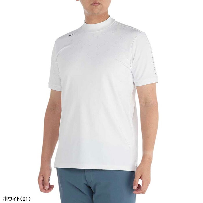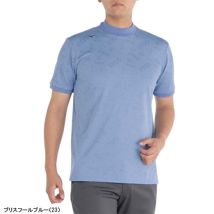 ミズノ ゴルフ 半袖 モックネックシャツ ゴルフモチーフジャガード メンズ E2MAB019 トップス ゴルフウェア 2024年春夏モデル 春夏ウェア Mizuno Golf