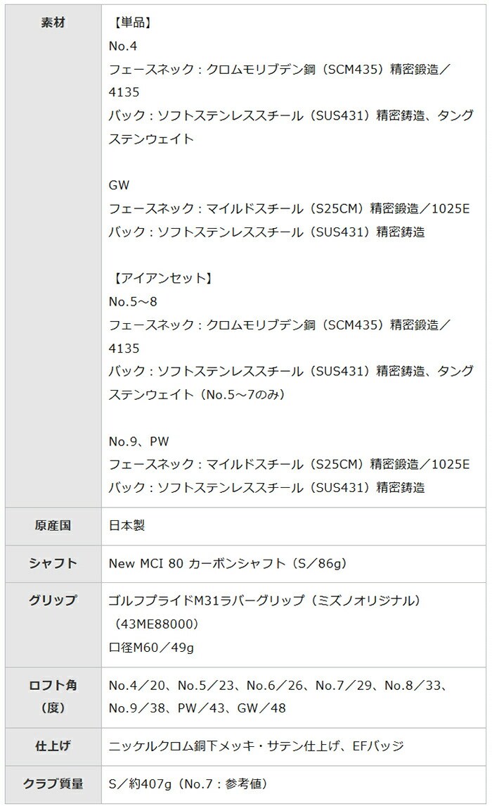 ミズノ Mizuno Pro M-15 アイアン 6本セット(No.5~9、PW)New MCI 80 カーボンシャフト 2025年モデル
