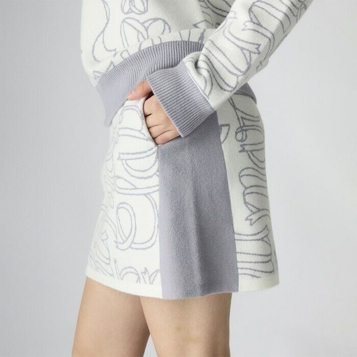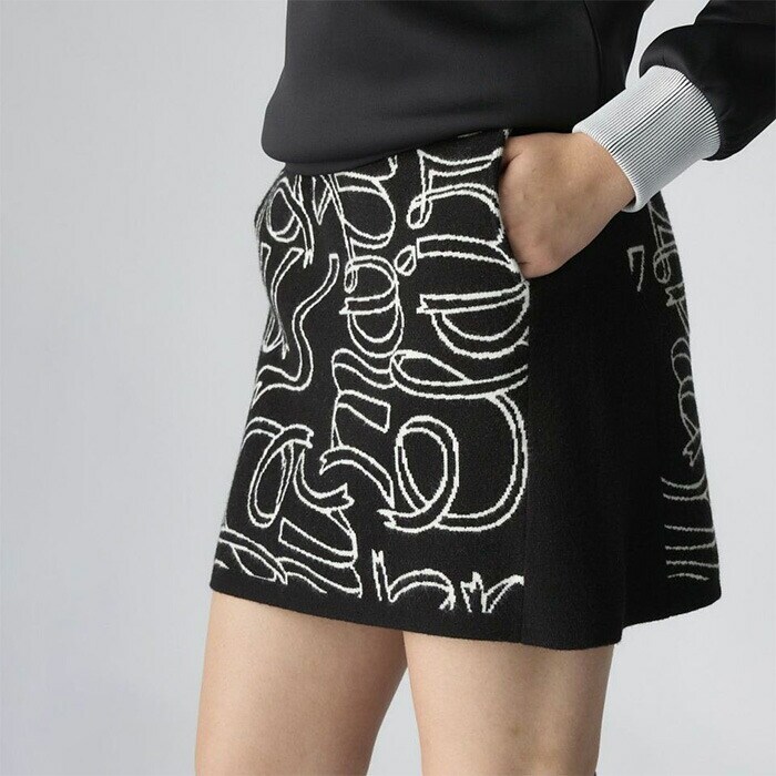 【レディース】マリ・クレール スカート リボンロゴニットスカート 735-352 ゴルフウェア ボトムス 保温 ストレッチ2025年秋冬モデル marie claire マリクレール 秋冬ウェア 女性