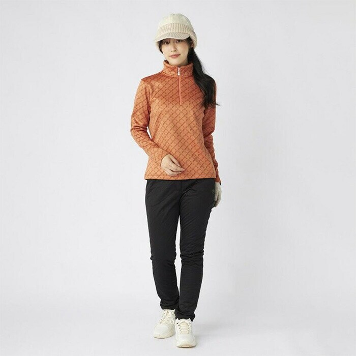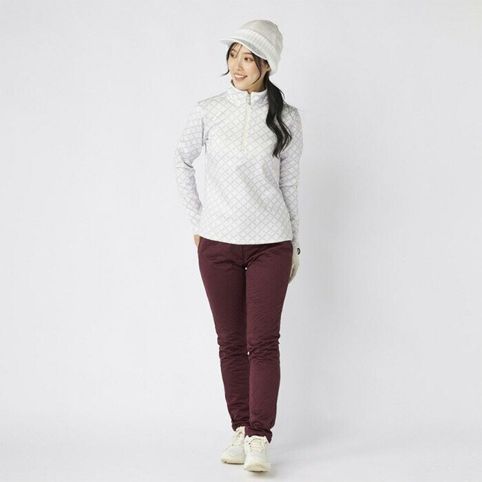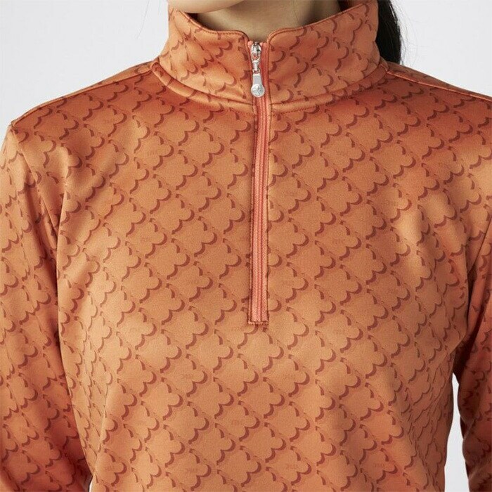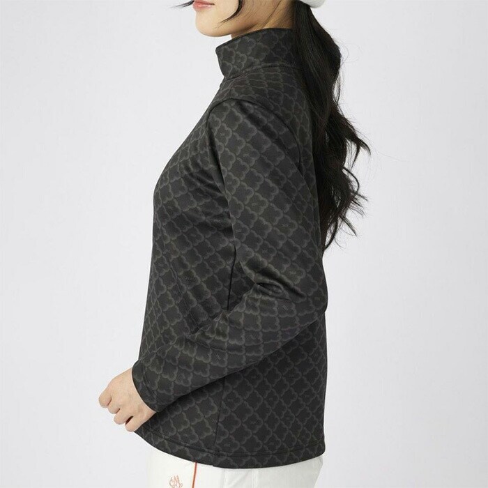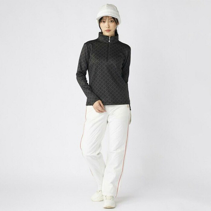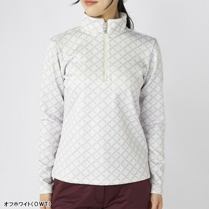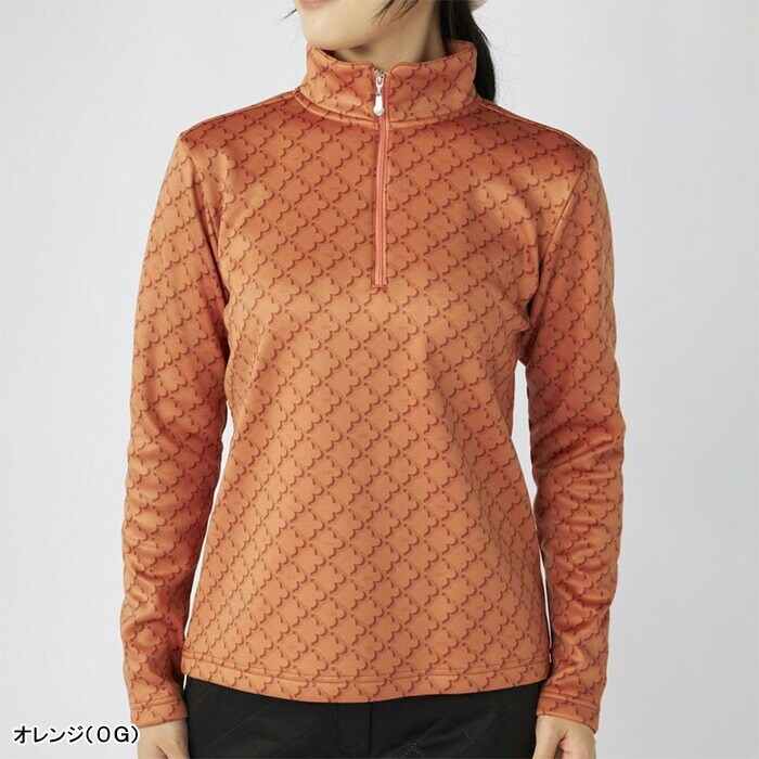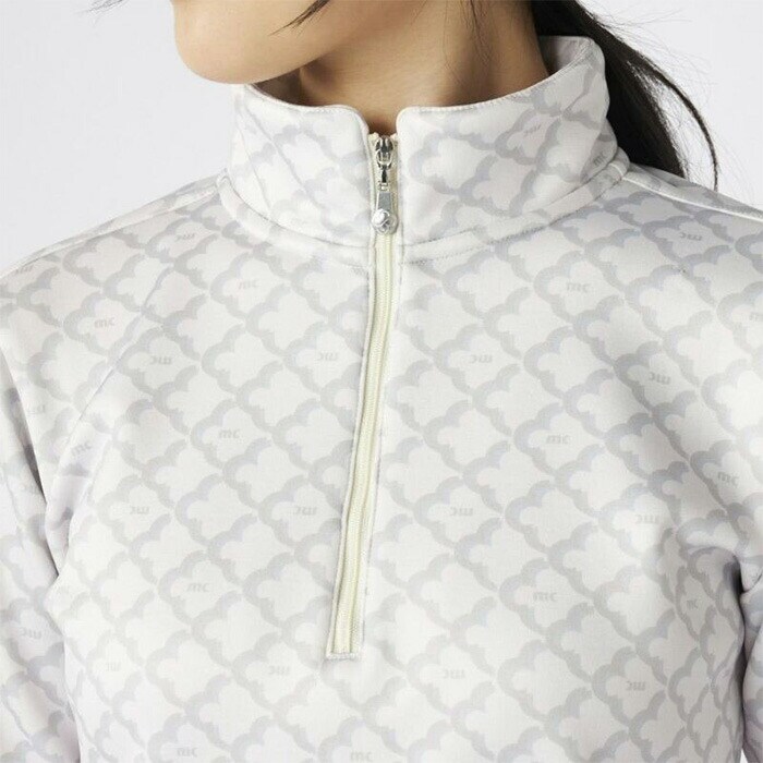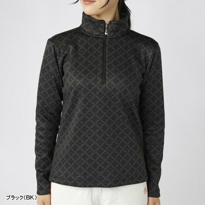 【レディース】マリ・クレール 長袖 ハーフジップシャツ モノグラム柄長袖ジップアップシャツ 735-558 ゴルフウェア UVカット 保温 ストレッチ 2025年秋冬 marie claire