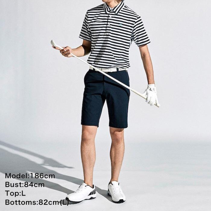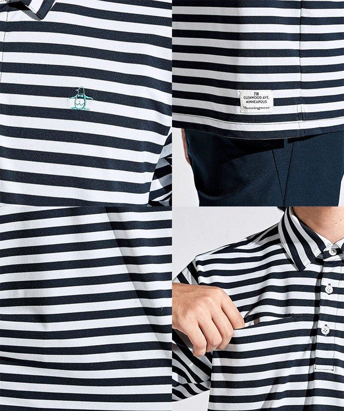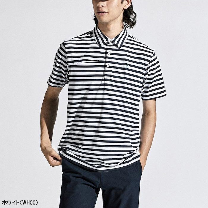 マンシングウェア 半袖 ポロシャツ 先染め ボーダー テーラーカラーシャツ メンズ MGMXJA16 ゴルフウェア トップス 春夏モデル Munsingwear 春夏ウェア 24SS