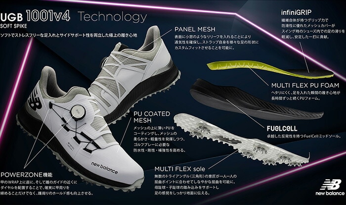 ニューバランス ゴルフシューズ フューエルセル 1001 V4 BOA UGB1001 ボア ダイヤル式 UGB1001W ソフトスパイク 2E相当
