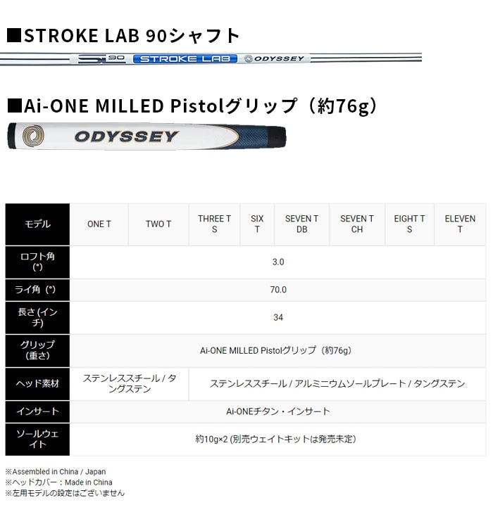 オデッセイ Ai-ONE MILLED パター STROKE LAB 90 スチールシャフト装着 2023年モデル[ODYSSEY エーアイワン ミルド][日本仕様 日本正規品]