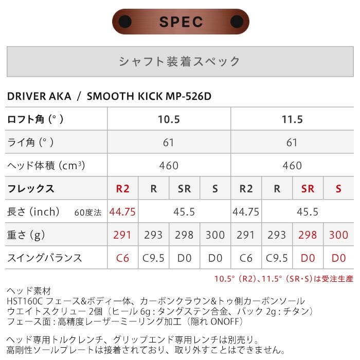 AKAドライバー専用設計シャフト「SMOOTH KICK MP-526D」。