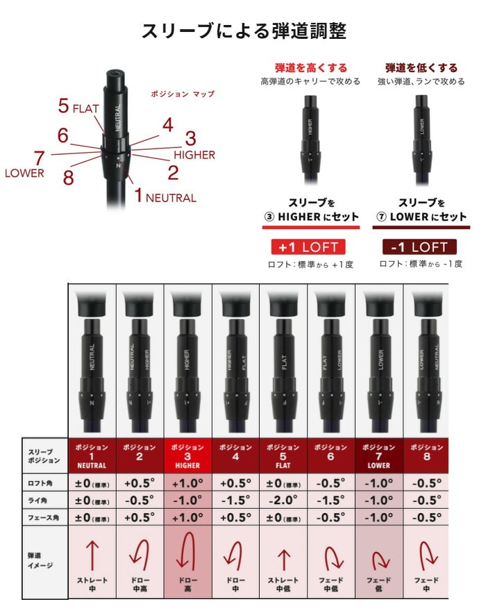 弾道調整が可能。標準スペックから、下記数値を増減したロフト