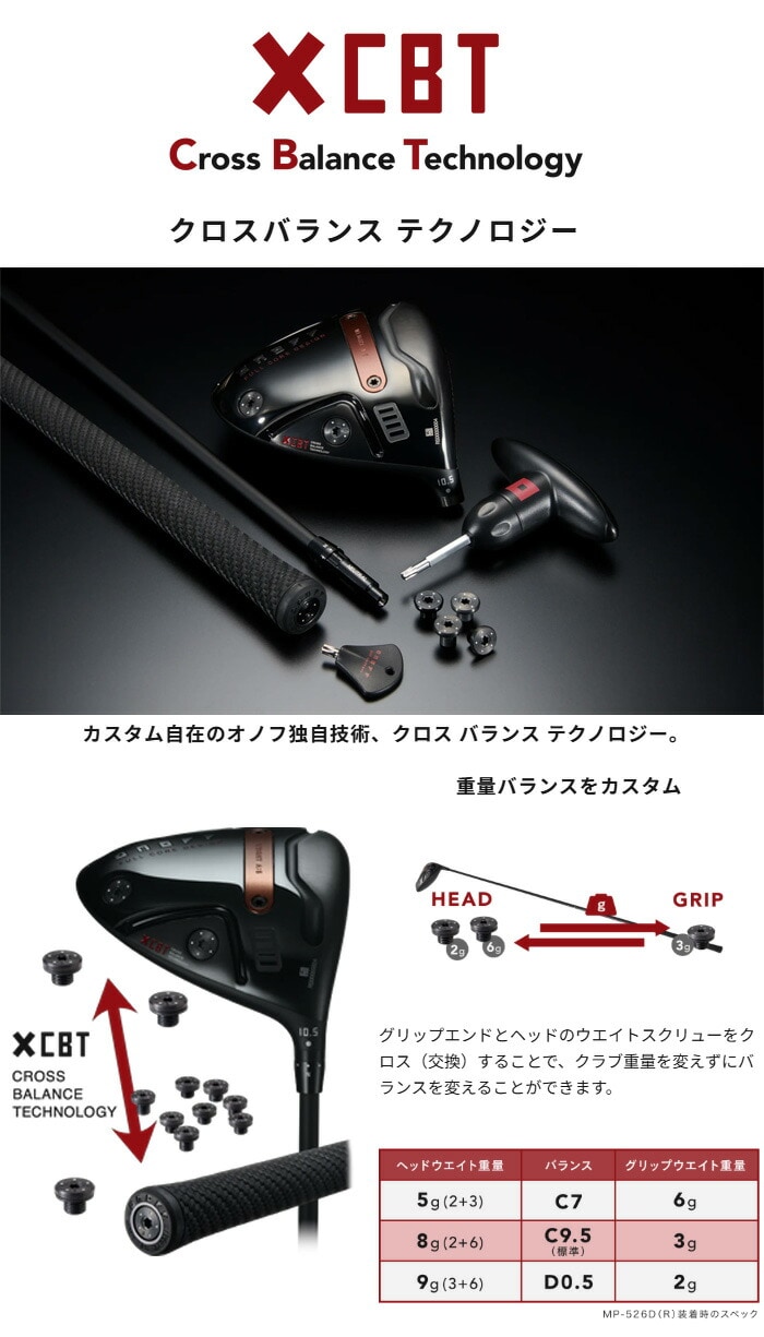 ひとりに最適な重量やバランスに調整可能。標準仕様では、8gのウエイト