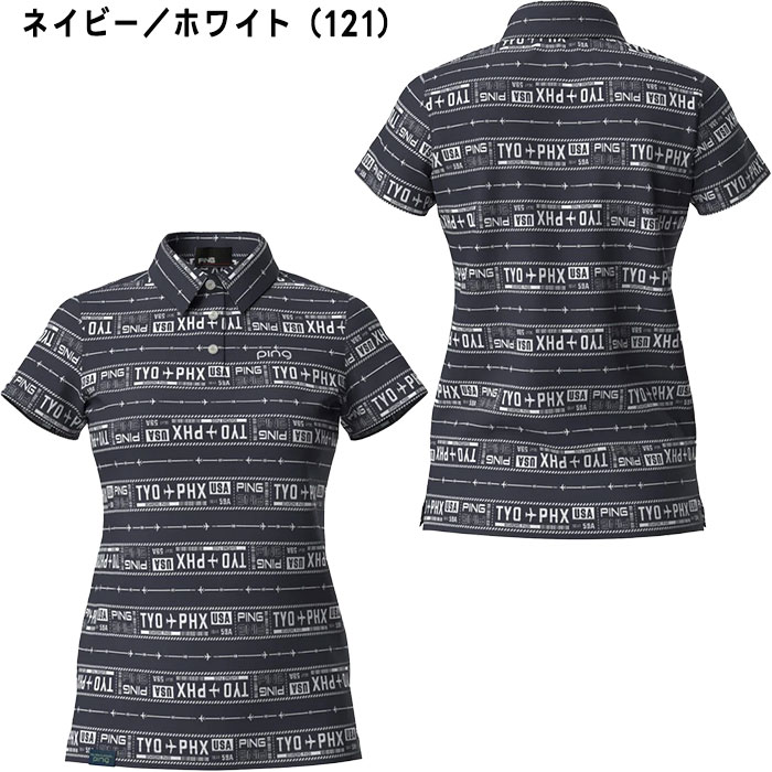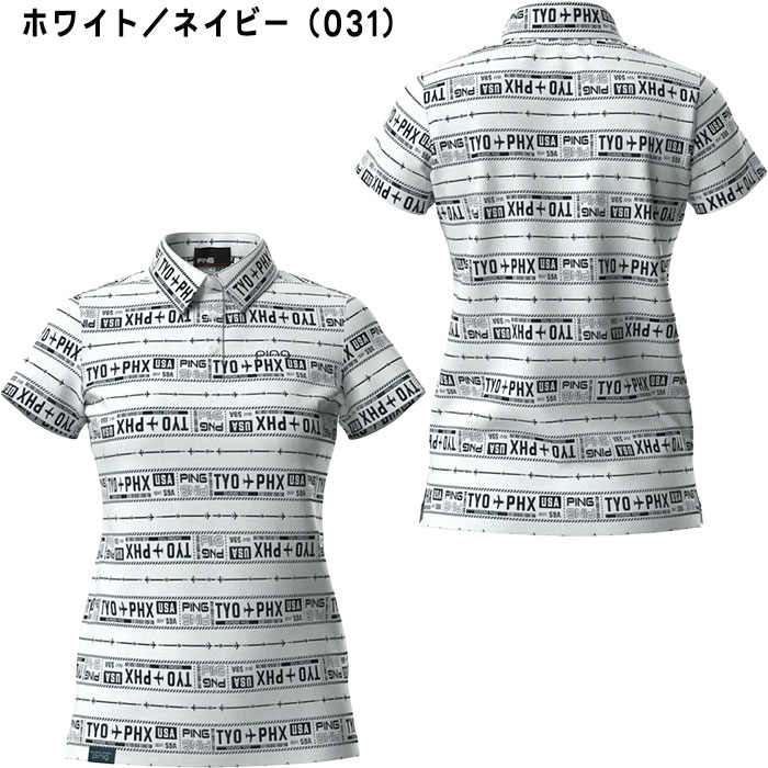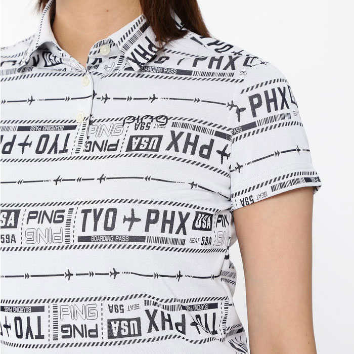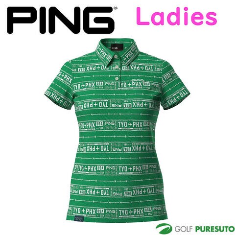 【レディース】ピン ゴルフ チケット柄 ジャガード 半袖 ポロシャツ 622-5160206
