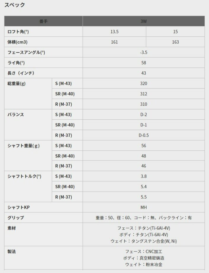 ※SLEルール適合品 ※オリジナルヘッドカバー(Made in CHINA)付 ※クラブ長さ:JGGA測定法による計測値 |