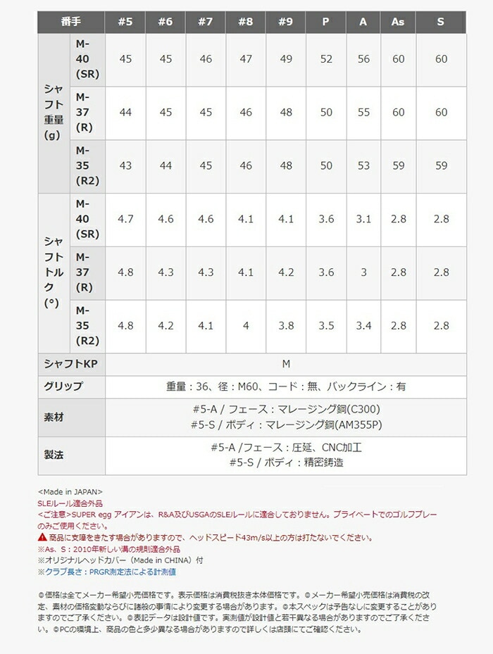 プロギア SUPER egg アイアン 単品(#5、#6、As、S)2024年モデル オリジナルカーボンシャフト