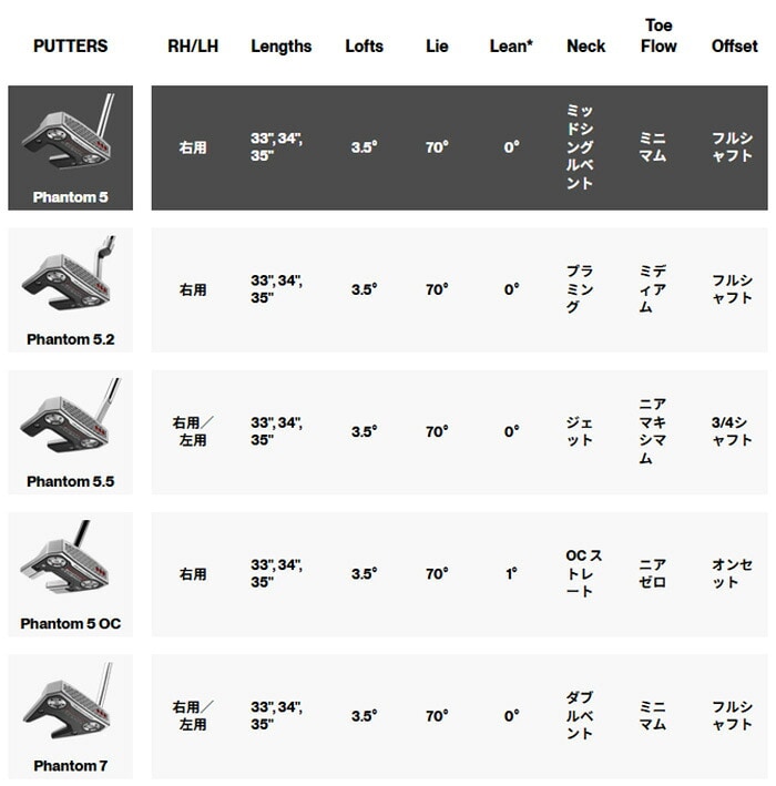 | ミッドシングルベントシャフトを採用したPhantom 5は、ストレートなストロークに対応し、最小限のトウフローを発揮します。 |