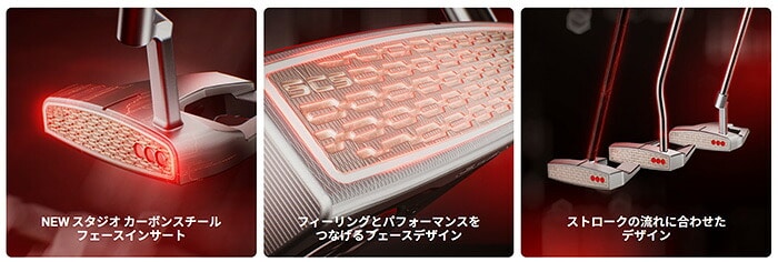 | PHANTOMは、モダンマレットの性能と打感を新たな次元へと進化させたモデルです。新開発のフルフェース「スタジオ カーボンスチール インサート」が、よりソフトな打音と精密な距離コントロールを実現。さらに新しいヘッド形状とネックオプションにより、あらゆるストロークスタイルにマッチする理想のセッティングを提供します。 |