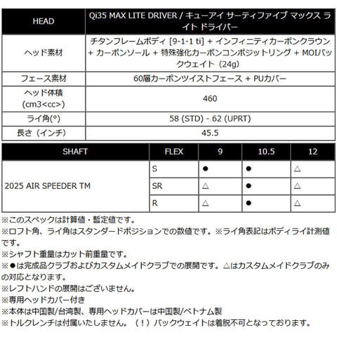 テーラーメイド Qi35 MAX LITE ドライバー AIR SPEEDER TM カーボンシャフト 2025年モデル 日本仕様 Taylormade キューアイ サーティファイブ マックス ライト