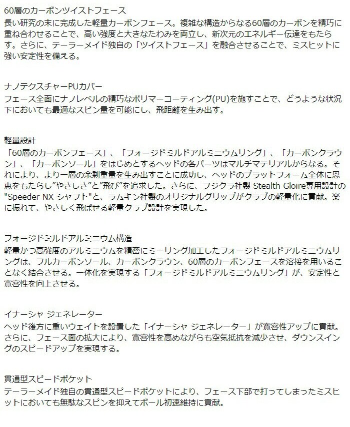 【レディース】テーラーメイド STEALTH GLOIRE ドライバー FUJIKURA SPEEDER NX for TM カーボンシャフト