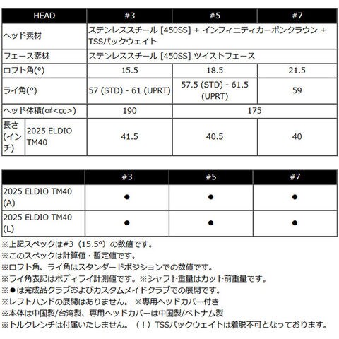 ※上記スペックは#3(15.5°)の数値です。