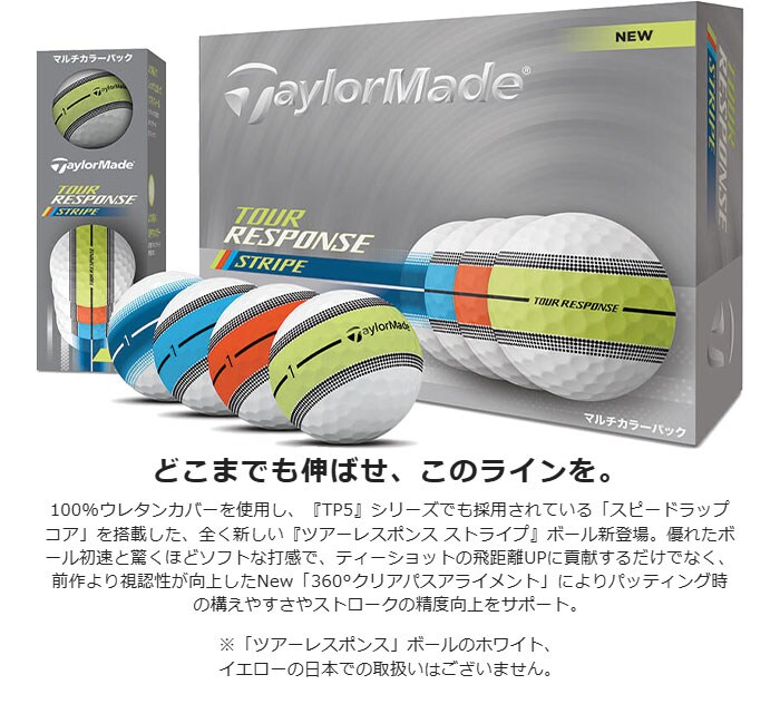 テーラーメイド ゴルフボール ツアーレスポンス ストライプ ネオン マルチカラー 1ダース(12球入)2025年モデル TaylorMade Tour Response Stripe NEON