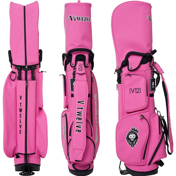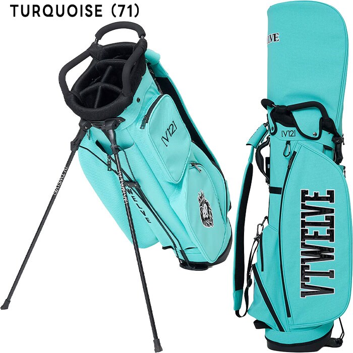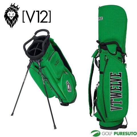 さまざまなV12ロゴをコントラストで表現した9インチのスタンドキャディバッグ。