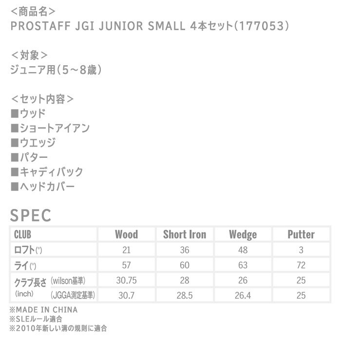 【ジュニア】ウィルソン プロスタッフ JGI スモール クラブ4本セット キャディバッグ付