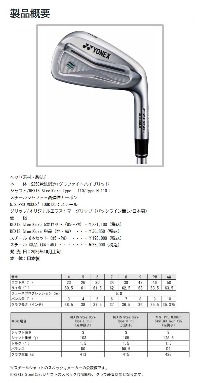 ヨネックス EZONE CB302 アイアン 6本セット(#5~PW)N.S.PRO MODUS3 SYSTEM3 T125 スチールシャフト 2025年モデル