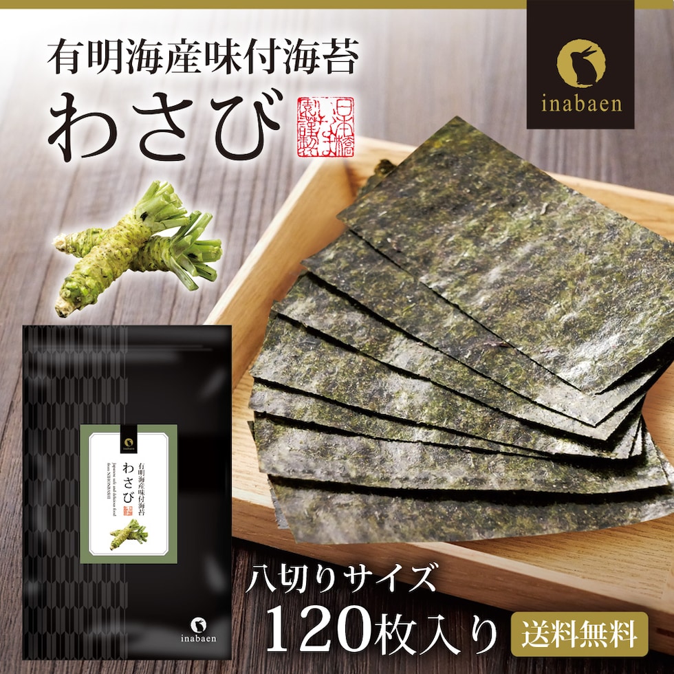 海苔 訳あり 有明産 わさび海苔 味付け海苔 8切120枚 メール便 送料無料 味付け海苔 味つけ海苔 味海苔 おにぎらず 味のり 味付海苔 味付けのり 有明海苔 わけあり 有明海苔 おにぎりのり 焼海苔 焼きのり 茶匠庵 葉酸 ポイント消化