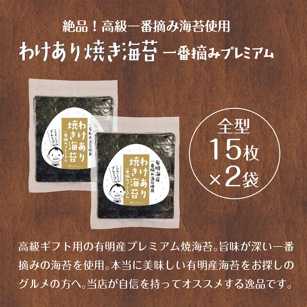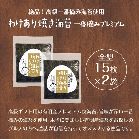 海苔 有明産 訳あり プレミアム高級焼き海苔 お得パック 全形15枚 2個セット メール便送料無料 おにぎらず 焼き海苔 焼きのり 焼のり 訳あり品 有明のり 有明海苔 訳あり食品 ワケあり おにぎりのり 高級海苔 葉酸 タウリン 恵方巻き ポイント消化
