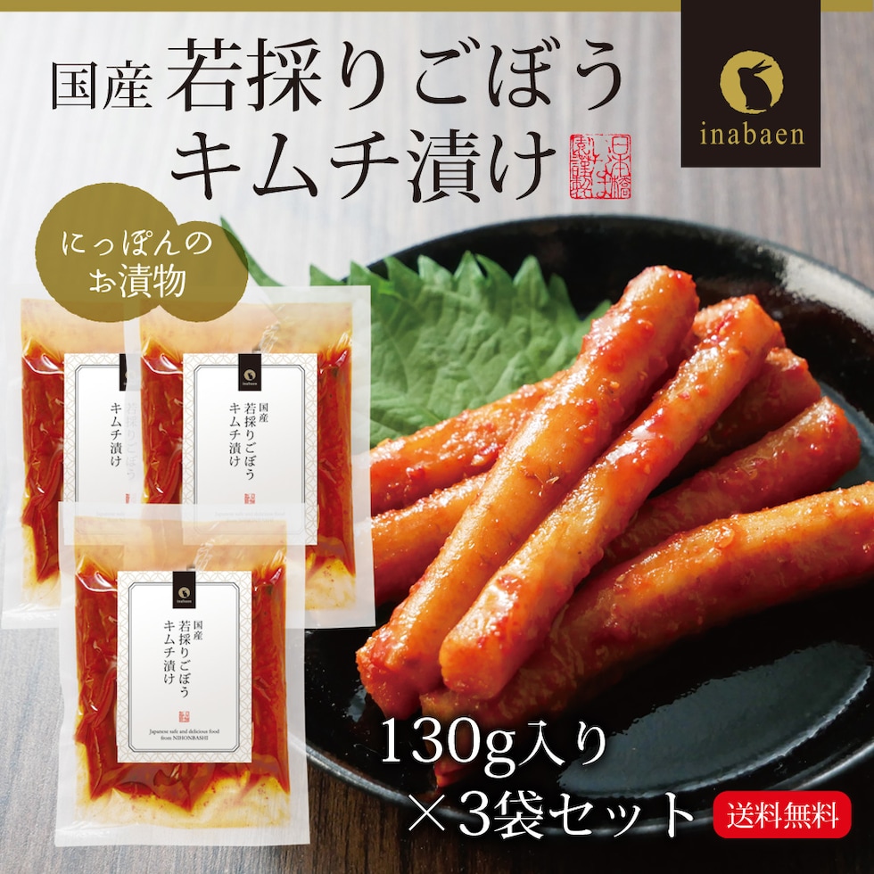 漬物 国産ごぼうキムチ漬け 130g 3個セット メール便送料無料 漬け物 国産 お漬物 ご飯のおとも ご飯のお供 お礼 贈答 内祝い 弁当 贈物 プチギフト お土産 みやげ 茶匠庵 お惣菜 時短 おかず 一人暮らし 食品 ポイント消化 非常食