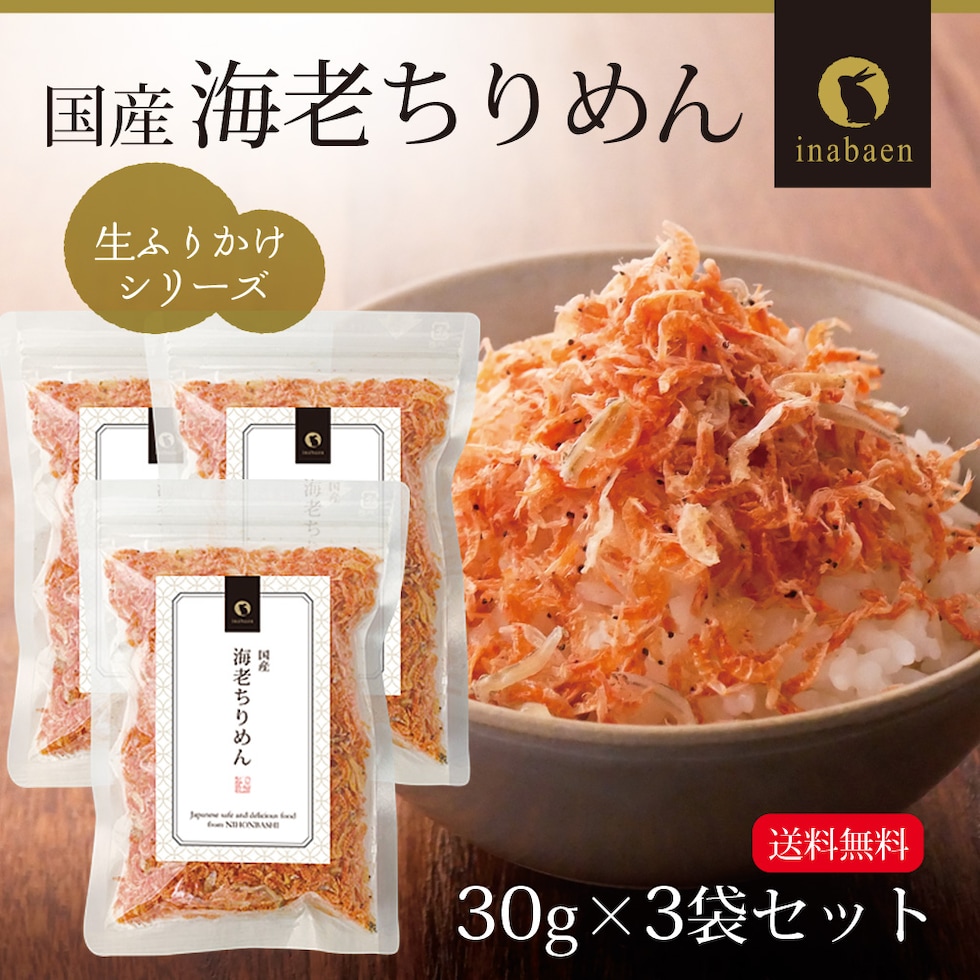 海老ちりめん ふりかけ 国産 30g 3袋セット メール便送料無料 ふりかけ おにぎり ご飯のおとも お茶漬け ギフト 時短 一人暮らし 食品 ポイント消化 オキアミ