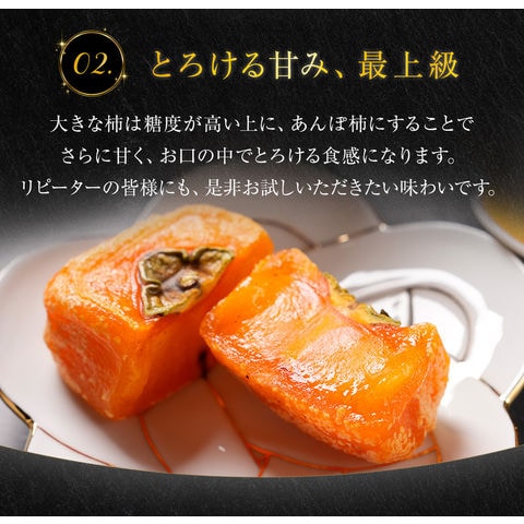 こちらは全体の1%以下の収穫量しかない、大変希少な特大サイズの柿のみを使用した、特別サイズのあんぽ柿。