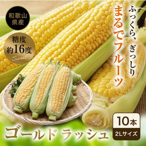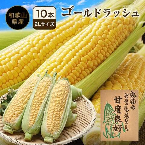 2026年 ご予約開始 和歌山の甘いとうもろこし ゴールドラッシュ 2Lサイズ10本(約4kg) 送料無料 和歌山県白浜町産、和歌山県産の減農薬、減化学肥料のこだわりトウモロコシ、高糖度の感動の美味しさを産地直送