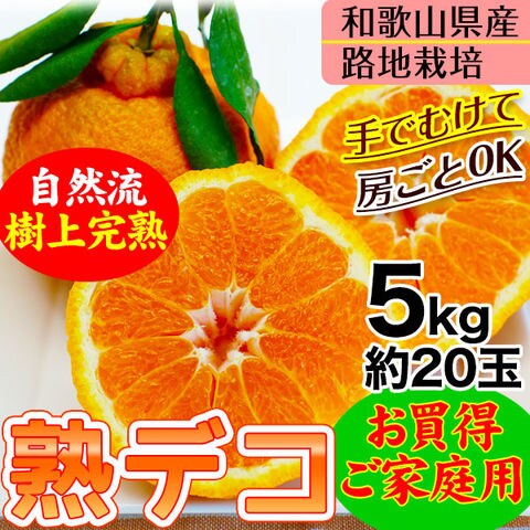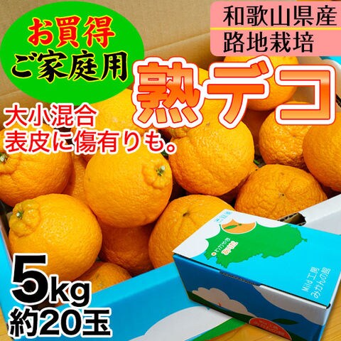 2025年ご予約開始 ご家庭用 不知火(デコポン) 露地栽培の樹上完熟デコポン「熟デコ」 和歌山県産【送料無料】 サイズ不揃い、多少の傷有り5kg(約20玉) 手でむけて、房ごと食べられる! 3月上旬以降の順次出荷
