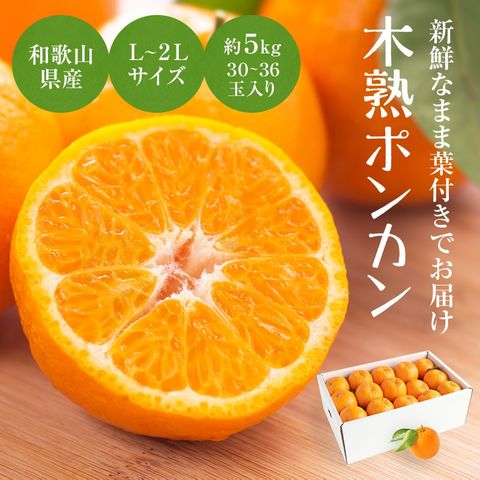 2026年ご予約開始 和歌山県産 木熟ポンカン L-2Lサイズ 30-36玉入 約5kg 送料無料 樹上で完熟させた甘いぽんかん。 新鮮なまま葉付きでお届け致します。みかんのように手でむけます