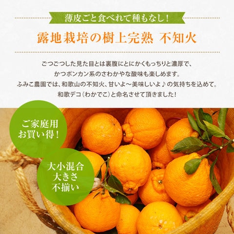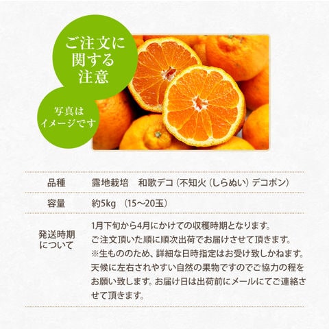 2026年 ご予約開始 ご家庭用 不知火(デコポン) 露地栽培の樹上完熟デコポン「和歌デコ」 和歌山県産【送料無料】 サイズ不揃い、多少の傷有り 5kg(約15-20玉) 手でむけて、房ごと食べられる!【2月下旬以降の順次出荷】
