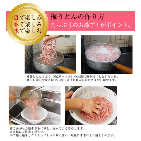 3.添付の梅干しを上に盛り付け、ざるうどんにしてお召し上がり下さい。