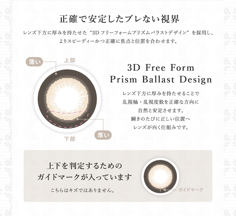 | 乱視度数(CYL) | -0.75D / -1.25D / -1.75D / -2.25D |