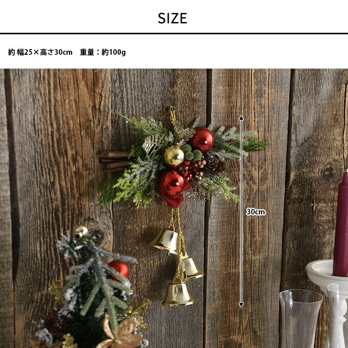 クリスマス スワッグ ミニ 北欧 クリスマス雑貨 玄関 森の前菜 ベル&レッドボール 長さ30cm