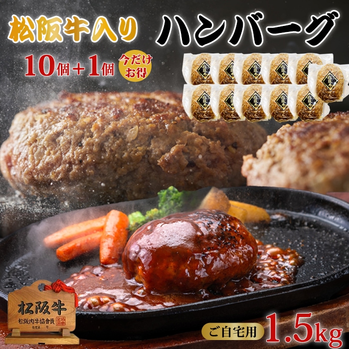 松阪牛 ハンバーグ 1.5kg 松阪牛入りハンバーグ 10個 今だけ11個 グルメ ギフト 化粧箱