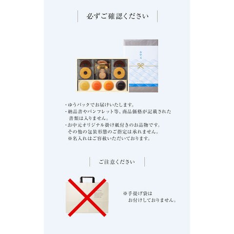 | ・お中元オリジナル掛け紙をお付けしてお届けいたします。 お中元オリジナル掛け紙以外の包装方法はお選びいただけません。 ・手提げ袋の付かないお品物でございます。 ※パッケージデザインは変更になる場合がございます。予めご了承くださいませ。 |