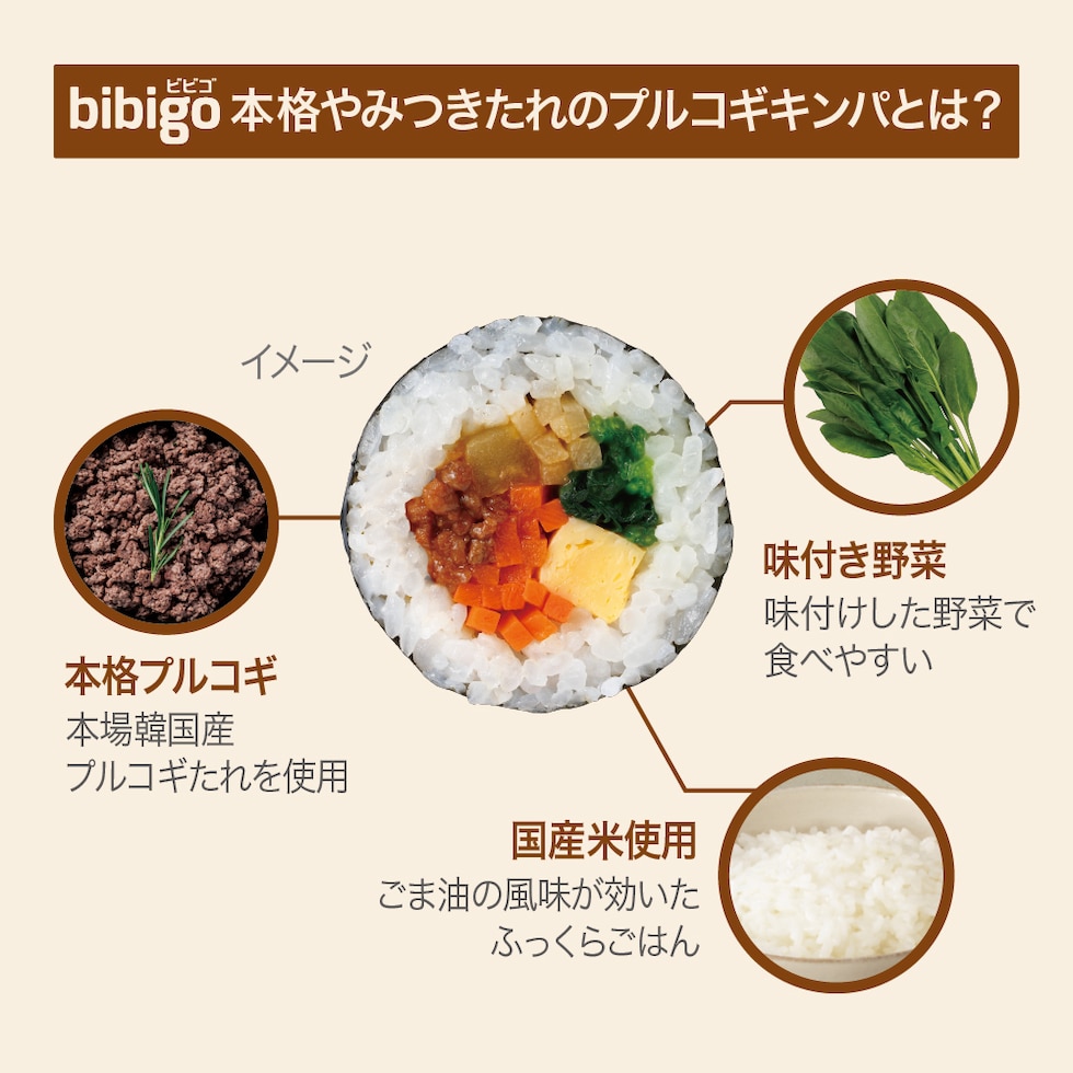 【新商品】bibigo キンパ3種セット(ひとくちでおいしい5種具材のキンパ、本格やみつきたれのプルコギキンパ、とろ~りのびるキムチチーズキンパ)送料無料 冷凍 海苔巻き 電子レンジ調理