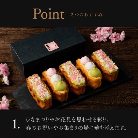 ●内容量:5個入り (抹茶あずき3個・いちごレモン2個) ※ワッフルケーキ1個あたりのサイズ:横…約80mm、縦…約50mm、厚さ…約35mm